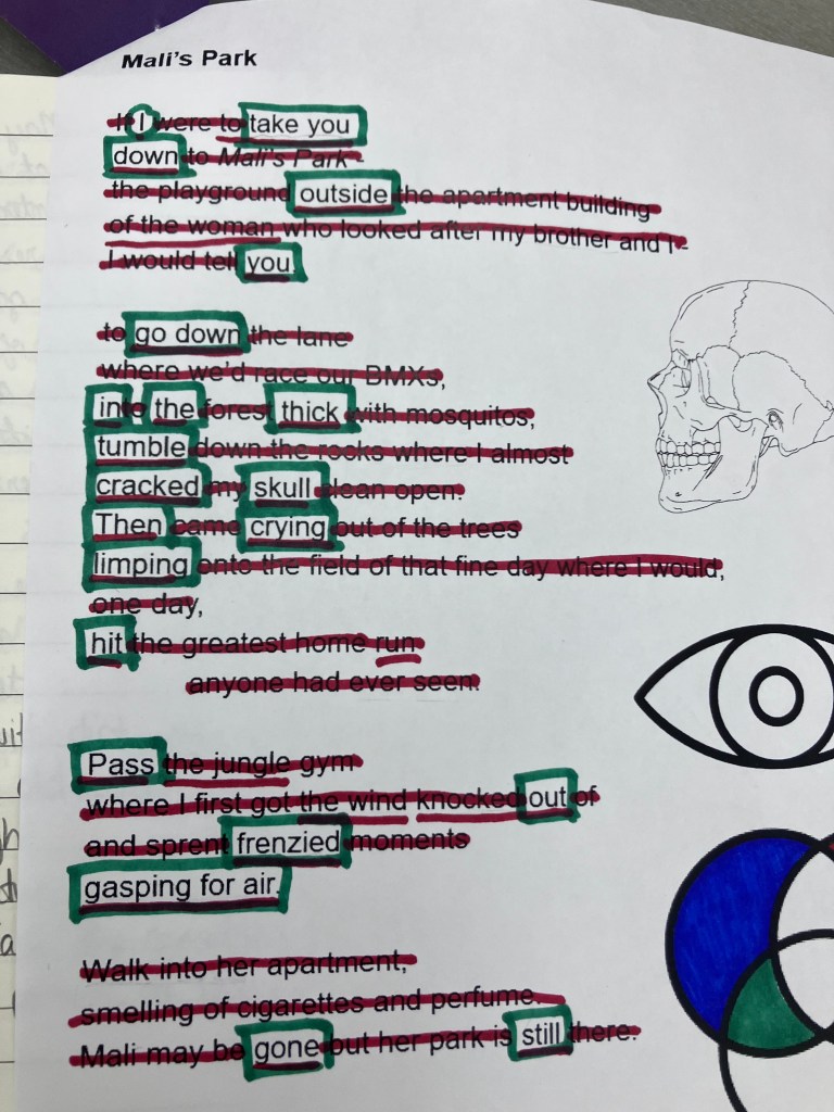 I went to a poetry workshop at my local library today with poet Jamesie Fournier, who is a really cool dude and excellent writer and presenter. It was crowded, which was so great to see! The workshop itself was fascinating and we wrote a couple poems each, including a blackout poem derived from Jamesie’s poem, Mali’s Park, and a poem made up of directions to a place. In this case, I chose to retrace the journey I took to university for the first time. Which means, for the first time in AGES, I have poetry to share with you! (Not that I haven’t been writing poems, but I only share some. Unfortunately, putting my poems on this blog can disqualify them publication elsewhere.) Anyway—enjoy!